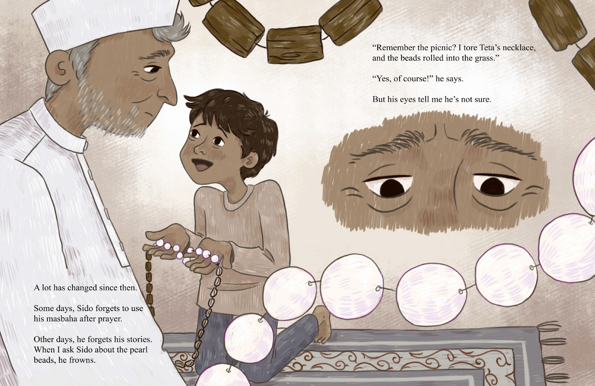 Musa’s grandfather made his very own masbaha two years ago, when he started losing his memory. Each bead carries a story, and Musa loves to hear the stories again and again. But as time passes, Sido’s stories are slipping away. Then the masbaha tears, and the beads scatter everywhere. How will Musa come to terms with everything that’s changing with Sido?